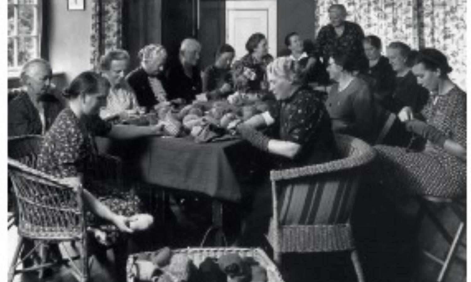 Fototekst: Medlemmer af det tyske mindretals Frauenschaft Nordschleswig stopper sokker for tyske soldater i