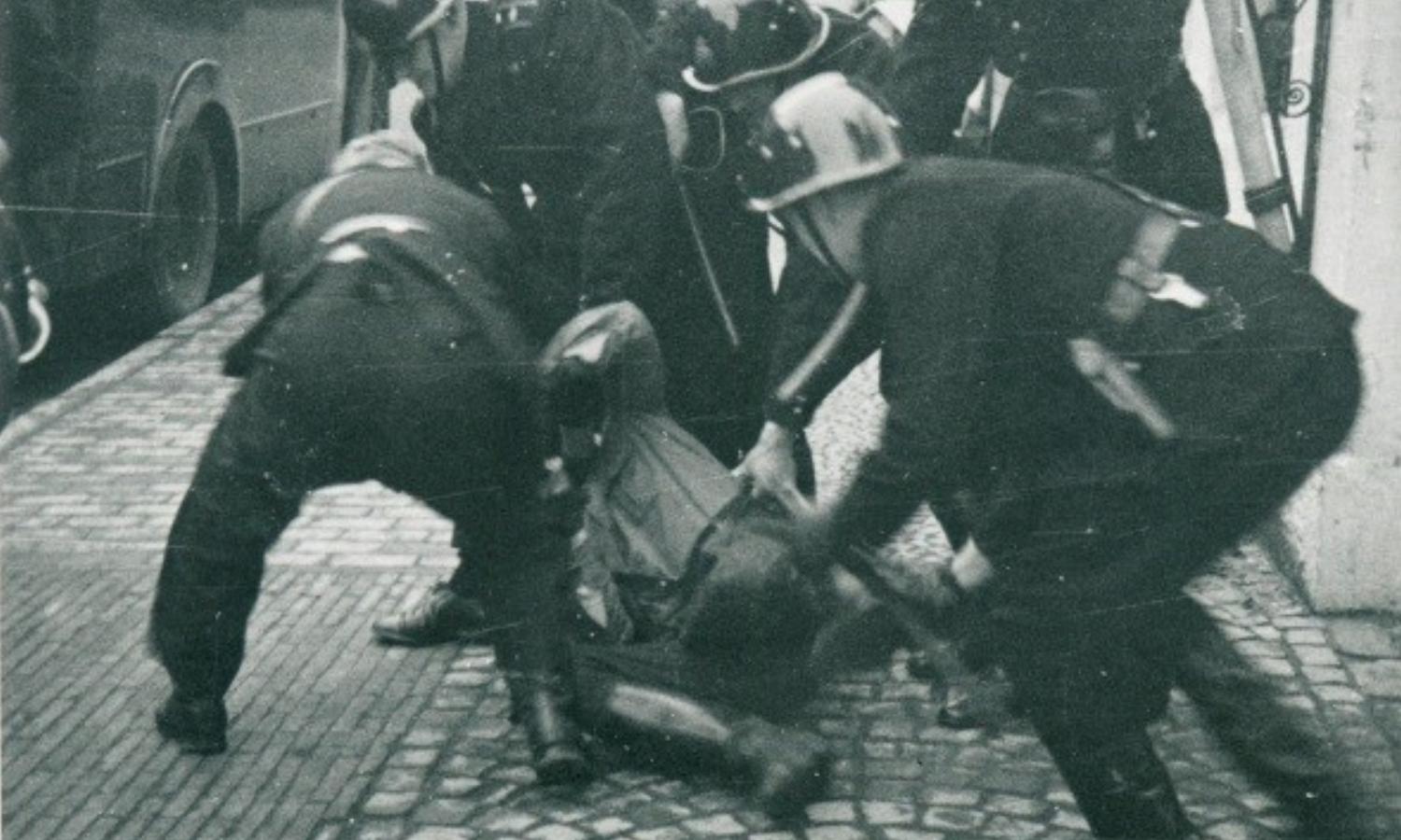 Og emnet omhandler det dramatisk opgør mellem de danske nazister i Frits Clausens DNSAP og dansk politi den 8. december 1940 i Haderslev. Her trodsede SA uniformsforbuddet ved en march gennem byen og angreb politiet med spader uden for Højskolehjemmet, men efter tilkaldelse af forstærkninger og brug af tåregas og brandsprøjter blev SA’erne arresteret.