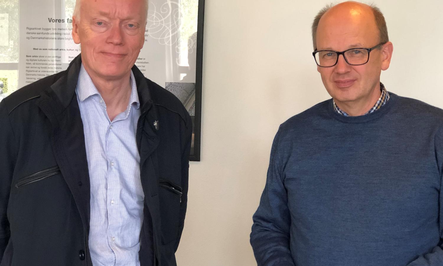 Jørn Mikkelsen og Hans Schultz Hansen gør klar til foredrag og debat om grænsestriden.