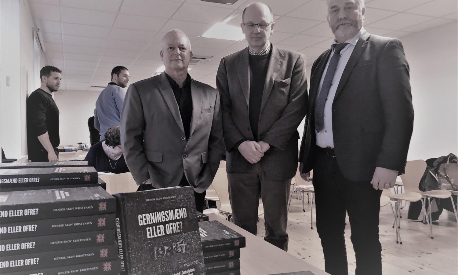 Foto: Forfatteren Henrik Skov Kristensen, udgiver Hans Schultz Hansen og BND-formand Hinrich Jürgensen. (Foto: Kristian Pallesen)